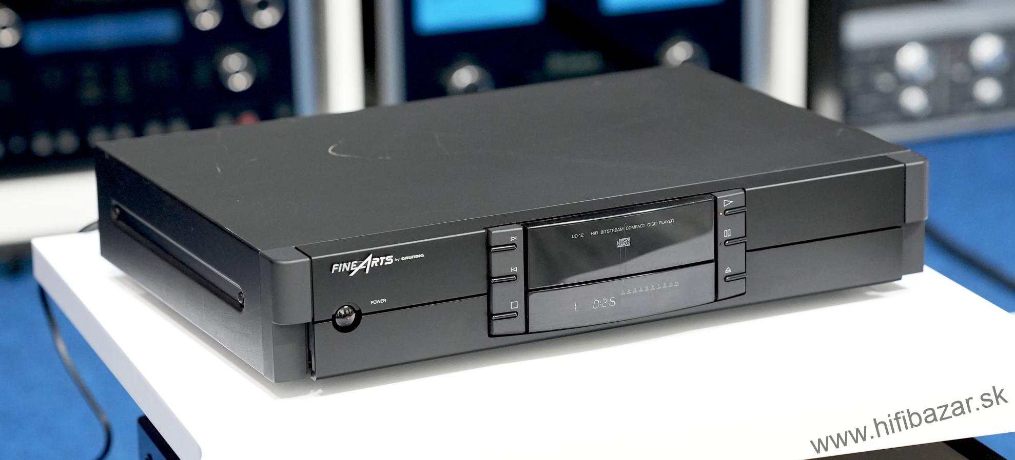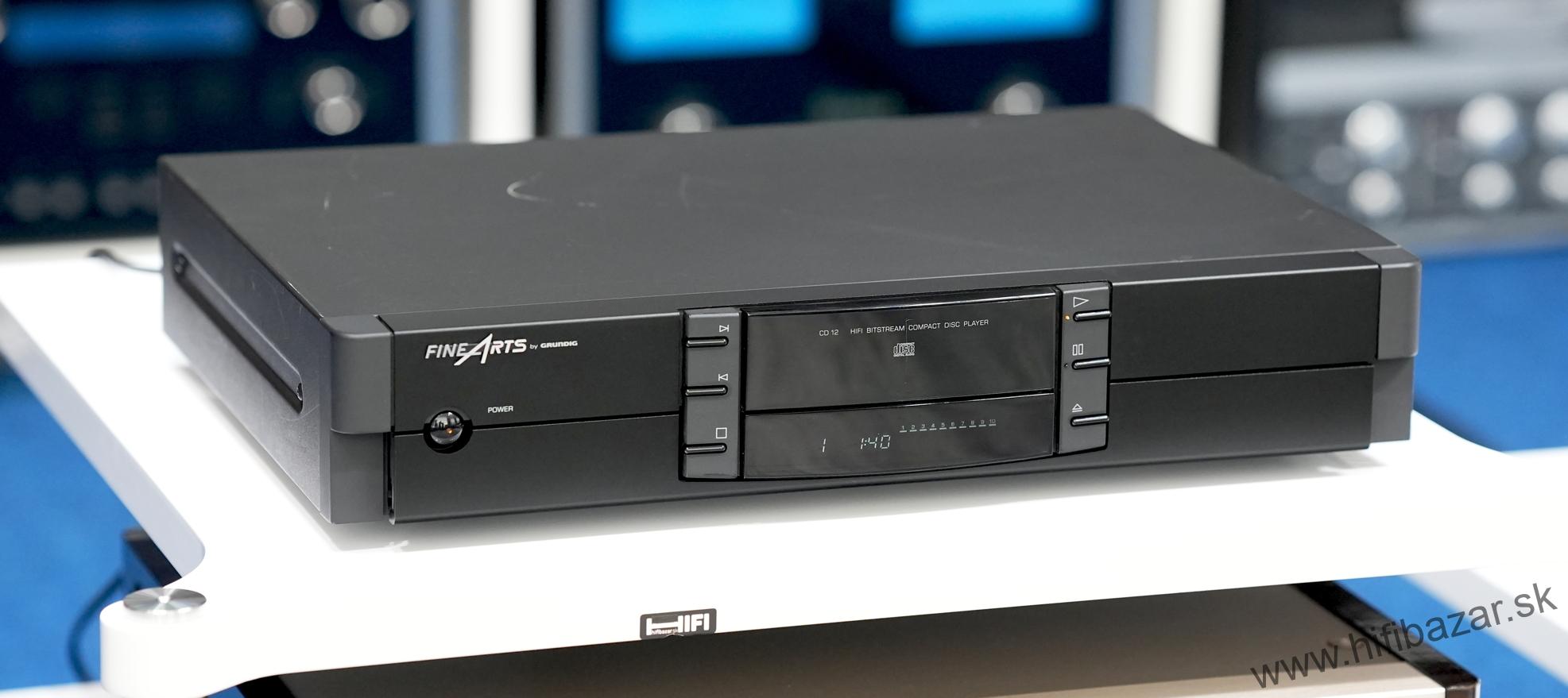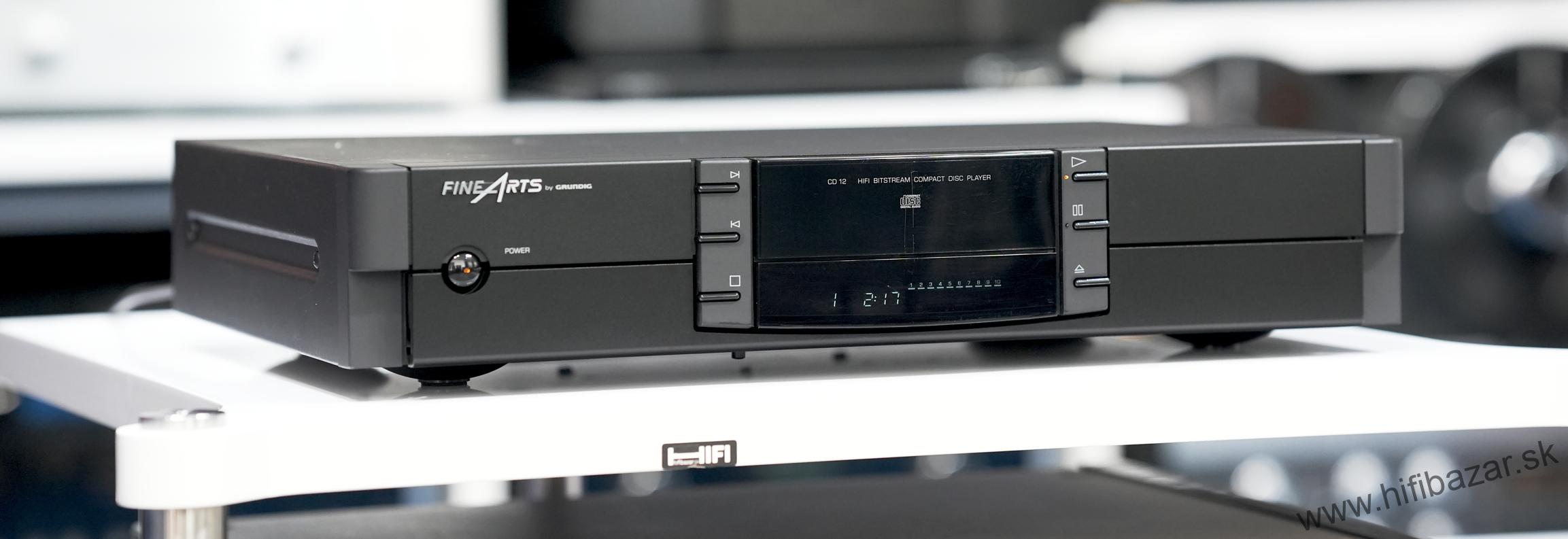 Grundig CD-12 je CD prehrávač z rady Fine Arts, postavený ako kompaktný, robustný komponent s kovovým telom. Ide o zaoblený „bookshelf“ dizajn v rozmere bežnom pre hi-fi komponenty. Prehráva štandardné CD disky a poskytuje analógový (RCA) výstup a digitálny koaxiálny výstup. Typ: CD prehrávač, DA prevodník: TDA1541, CD mechanizmus: Philips VAM1202, frekvenčný rozsah: 20 Hz - 20 kHz, dynamický rozsah: 96 dB, pomer signálu k šumu: 102 dB, oddelenie kanálov: 96 dB, THD (celkové harmonické skreslenie): < 0,006 %, výstupná úroveň: 2,0 Vrms, digitálny výstup: Áno (S/PDIF), slúchadlový výstup: Áno (s ovládaním hlasitosti), spotreba: 12 W, rozmery: 435 x 75 x 295 mm, hmotnosť: 3,5 kg.