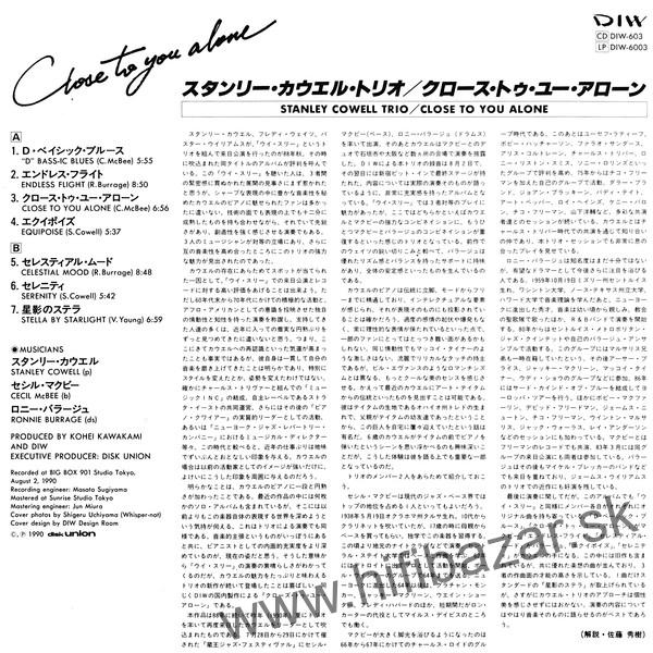 Úvod »Hudobné Nosiče» Stanley Cowell Trio - Close To You Alone