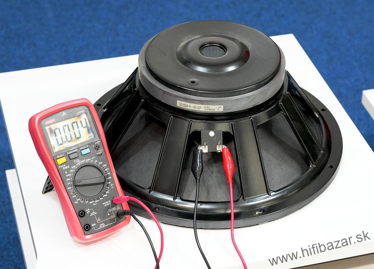 Typ: 15-palcový basový reproduktor, priemer meniča: 15" (38 cm), impedancia: 4 Ohm, citlivosť: 101 dB SPL / 1 W / 1 m, výkon: 400 wattov, špičkový výkon (peak): 1.000 wattov, frekvenčný rozsah: 40 Hz - 10 kHz (± 4 dB, -10 dB pri ~ 37 Hz. ), maximálny SPL: 125 dB, magnet: 104 oz (3,23 kg) - ide o silné magnetické jadro pre hlboký bas, rám: liaty pevný rám.