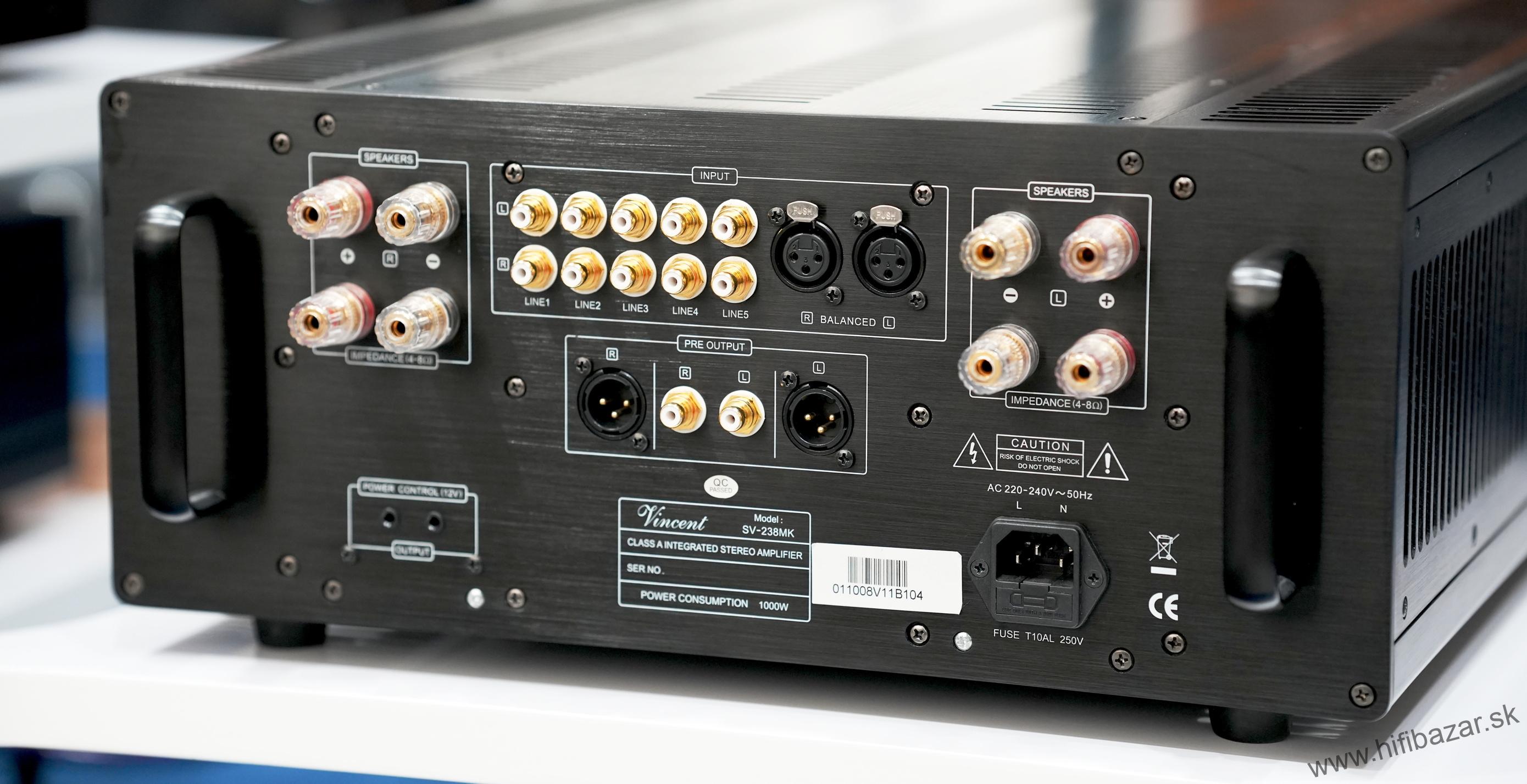 Vincent SV-238MK je výkonný a precízne spracovaný integrovaný stereo zosilňovač, ktorý spája tradičnú analógovú techniku s modernými prvkami, aby ponúkol zvuk najvyššieho štandardu. Jeho konštrukcia je robustná a masívna, čo zaručuje stabilitu a dlhú životnosť. Vďaka hybridnému zapojeniu tried A a AB dokáže poskytnúť čistý a detailný zvuk s dostatočnou výkonovou rezervou aj pre náročné reprosústavy. Zvukový prejav je vyvážený a prirodzený, so silným dôrazom na dynamiku a presnosť. Basové tóny sú pevné a kontrolované, stredy jemné a detailné, výšky čisté a bez tvrdosti. SV-238MK zvláda široké spektrum hudobných žánrov - od klasiky cez jazz až po rock či elektroniku - a vždy si zachováva presnosť aj muzikálnosť. Používateľa zaujme aj svojou flexibilitou: ponúka viacero analógových vstupov vrátane symetrických XLR, čo umožňuje jednoduché zapojenie v rôznych audio zostavách. Okrem toho disponuje výstupmi pre pripojenie externých komponentov, čím sa stáva skutočným srdcom domáceho ozvučenia. Celkovo Vincent SV-238MK pôsobí ako zosilňovač, ktorý si váži hudbu a dokáže ju verne preniesť do vášho posluchového priestoru, pričom si zachováva ideálnu rovnováhu medzi technickou precíznosťou a hudobným zážitkom. Je spoľahlivým partnerom pre tých, ktorí nehľadajú kompromisy a chcú si vychutnať každú notu so všetkými jej nuansami. Vhodný pre veľmi náročných poslucháčov, ktorí hľadajú zosilňovač s robustnou konštrukciou a vynikajúcim zvukovým prejavom.