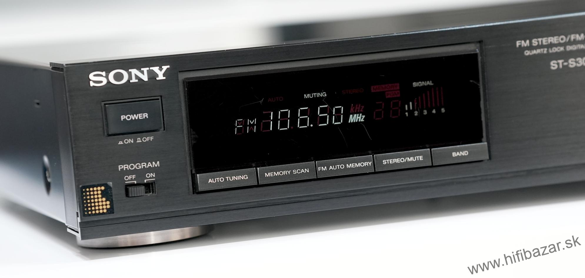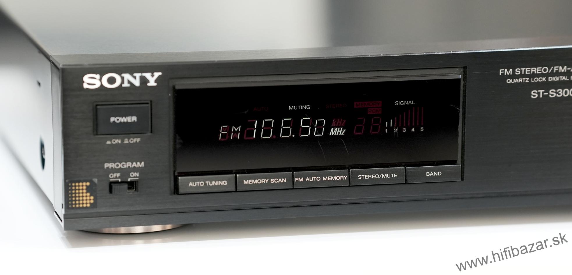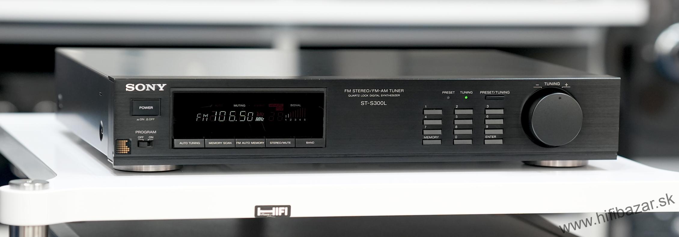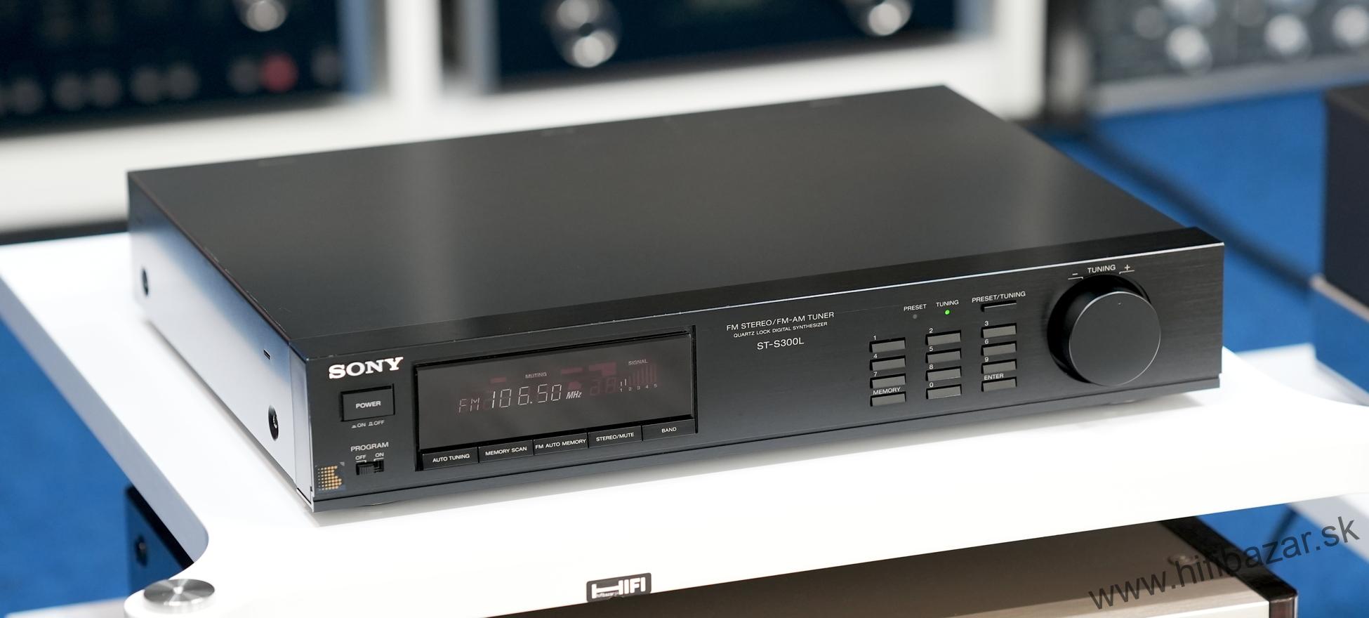 Sony ST-S300L je samostatný FM/AM stereo tuner (rádiový prijímač) určený pre hi-fi systémy, bez integrovaného zosilňovača. Vyznačuje sa digitálnym syntetizátorom ladenia, pamäťou na predvoľby staníc a digitálnym displejom. Jeho dizajn je pomerne plochý, typický pre komponentné hi-fi zariadenia z 90. rokov. Použitie je jednoduché: vyberiete pásmo (FM/AM), naladíte stanicu a prípadne si ju uložíte do pamäti ako predvoľbu. Je vhodný ako súčasť zostavy spolu s externým zosilňovačom a reproduktormi - zabezpečuje čistý rádiový signál bez rušivých vplyvov zosilňovača. Typ: FM/AM stereo tuner, rozsah (FM): 87,5 - 108 MHz, rozmery: 430 x 80 x 350 mm, hmotnosť: 3,1 kg.