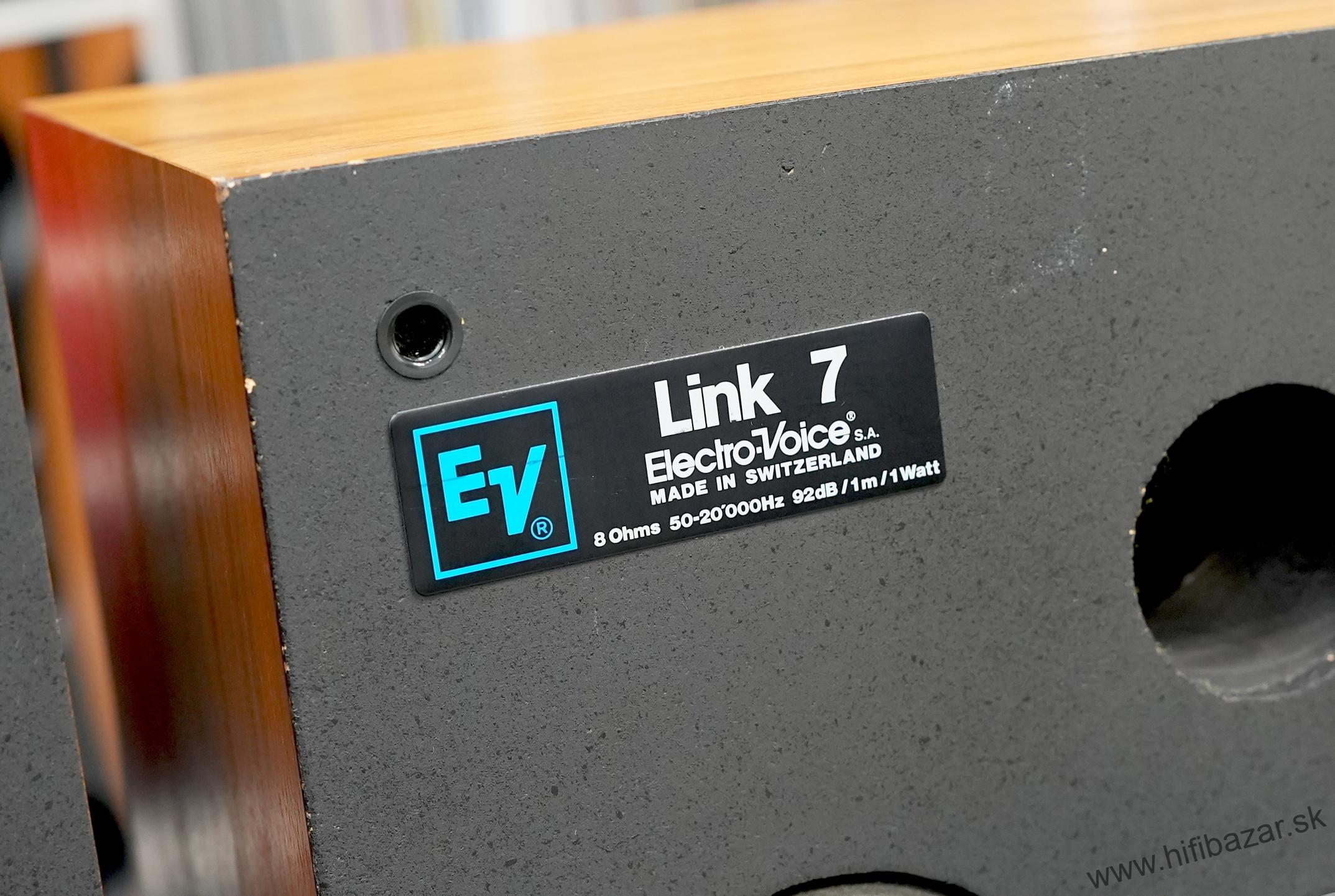 Electro-Voice Link 7 sú 2-pásmové pasívne policové reproduktory, ktoré boli súčasťou domácej high-fidelity série známeho Amerického výrobcu Electro-Voice. Vyrábané boli začiatkom 80. rokov (1981-1982), pričom sa vyznačovali robustnou konštrukciou a veľmi dobrým pomerom cena/výkon. Tieto vintage policové reproduktory sa vyskytujú u nás len zriedka, častejšie sa objavujú Link 3 alebo Link 5, niektoré kusy boli montované vo Švajčiarsku pre európsky trh, Ich zvuková filozofia bola zameraná skôr na realizmus a tonálnu vyváženosť než na efektný Hi-Fi zvuk. Sú veľmi vhodné pre páskové nahrávky a majú analógový charakter - dobre ladia s vintage ale aj moderným vybavením. Mnoho používateľov ich dodnes prevádzkuje a oceňuje ich "nenásilný" a muzikálny charakter.
