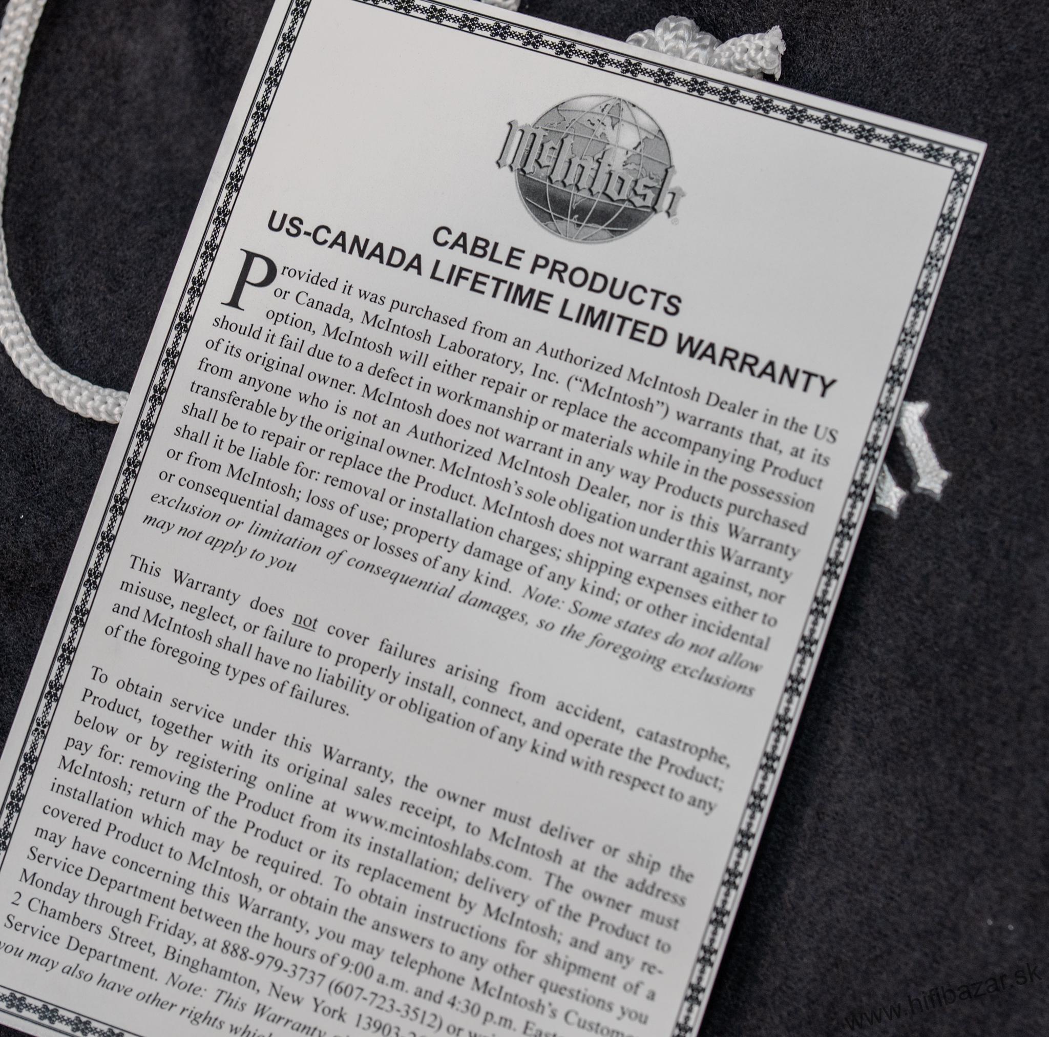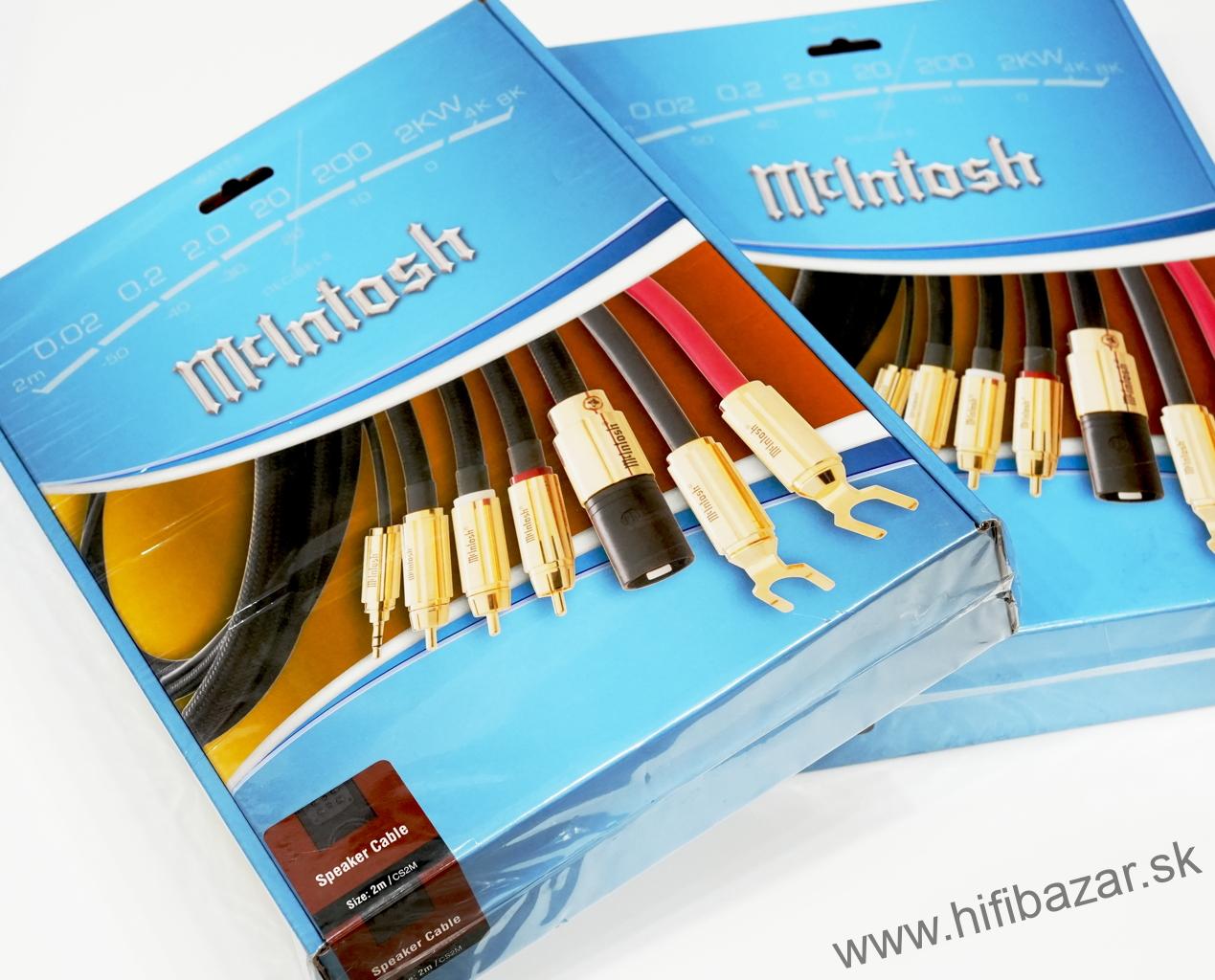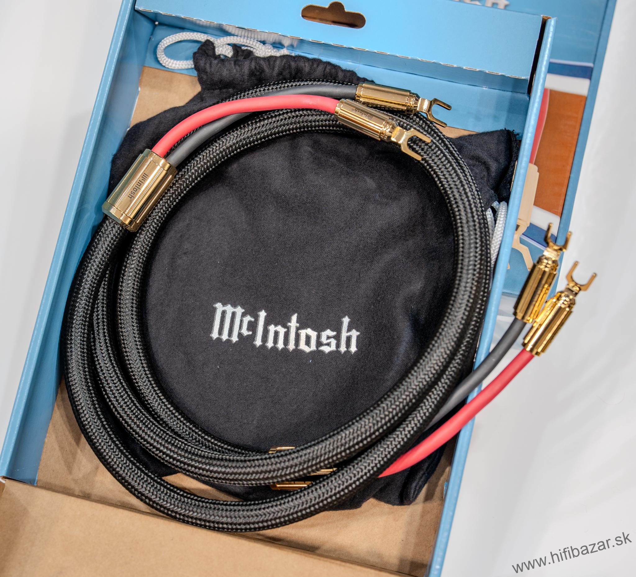 Reproduktorové káble McIntosh sú navrhnuté tak, aby naplno zvýraznili výkon zosilňovačov, reproduktorov a systémov tejto legendárnej značky. Každý kábel obsahuje dva masívne zväzky vodičov z mimoriadne čistej medi, ktoré zabezpečujú excelentný prenos signálu s minimálnymi stratami. Vodiče sú uložené v elegantnom, čiernom a nehorľavom plášti, ktorý chráni kábel a zároveň pôsobí esteticky. Koncovky z masívnej mosadze sú pozlátené pre maximálnu vodivosť, dlhú životnosť a odolnosť voči korózii. Káble McIntosh prenášajú do reproduktorov plný výkon zosilňovačov McIntosh s absolútnou vernosťou a dynamikou. Model CS2M má dĺžku 2x 2 metre, pôvodná MOC: 2.695 $ (pár). Uvedená cena je za 2 kusy (Pár).
