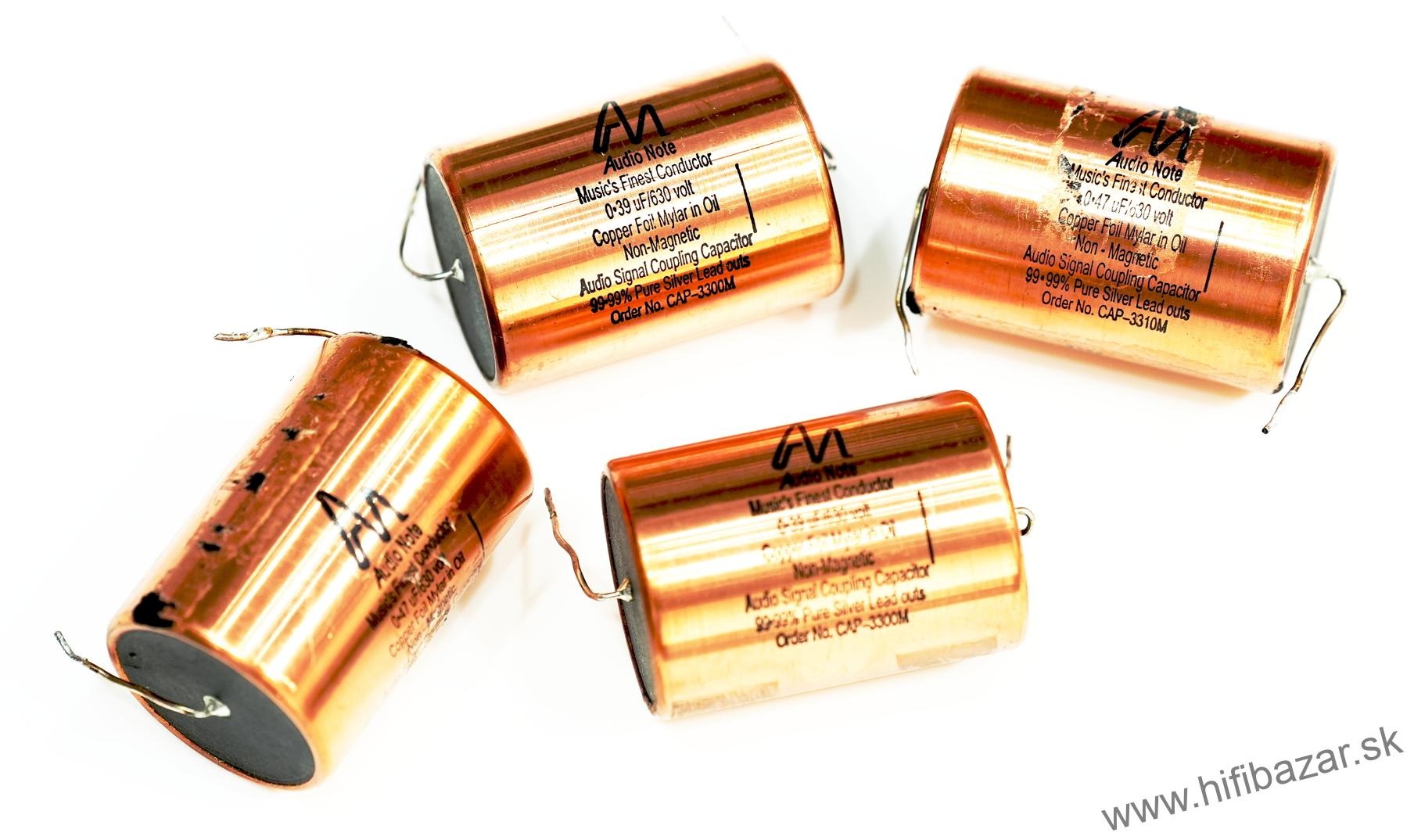 Sortiment signálnych kondenzátorov Audio Note predstavuje špičku v oblasti audio komponentov. Nové medené kondenzátory sú určené najmä pre zosilňovače s triódami, no výborne sa hodia aj do iných audio aplikácií. Ponúkajú výborný pomer ceny a výkonu a zvukovo prekonávajú aj modely Jensen. Vylepšené materiály, precízna výroba, prísne tolerancie a medený obal namiesto hliníka či plastu prinášajú prirodzenejší a detailnejší zvuk. Medená fólia, mylarový olejový kondenzátor (medený obal, strieborné vodiče), 35 x 50 mm. Uvedená cena je za 1 kus.